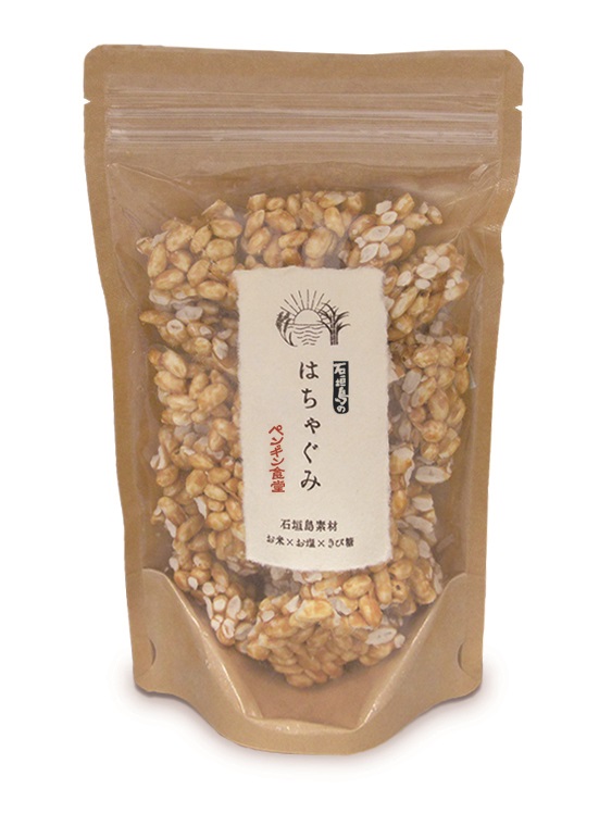 - 弊社の取締役が福岡の障がい者支援施設で作っているポン菓子を食べて、あまりの美味しさに感動したのがはじまり。沖縄にも「はちゃぐみ」と呼ばれるポン菓子があるのを思い出し、島の食材を使ったはちゃぐみをを作りたい︕とオリジナルレシピが完成。食べやすい形になるまで試作を重ね2019年に完成。使っているのは石垣島で育ったお米や、島産さとうきび100%のお砂糖。名蔵湾に広がる美しい珊瑚礁の海水から作った石垣の塩Ⓡ。素材の味を活かした自然で優しい甘さに、まろやかな海塩の旨味が効いて、素朴で優しい甘さのサクサクなお菓子となりました。食べはじめたらやみつきになる美味しさです。